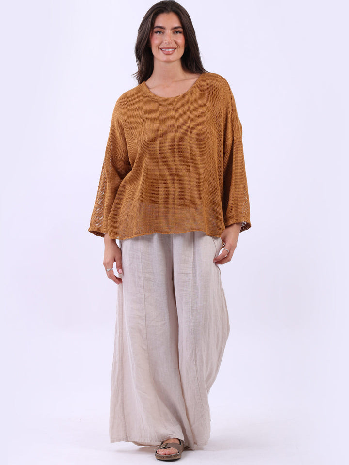 This women’s two-layered lagenlook mesh top is exactly what you need for those unpredictable autumn days! With its relaxed fit, simple round neckline, and long sleeves, it gives off that easy going Italian Moda vibe. Pair it with high-waist jeans and boots for a cosy, stylish fall look, or go for a more feminine touch by wearing it with a flowy skirt. Either way, it is a perfect pick for the season!