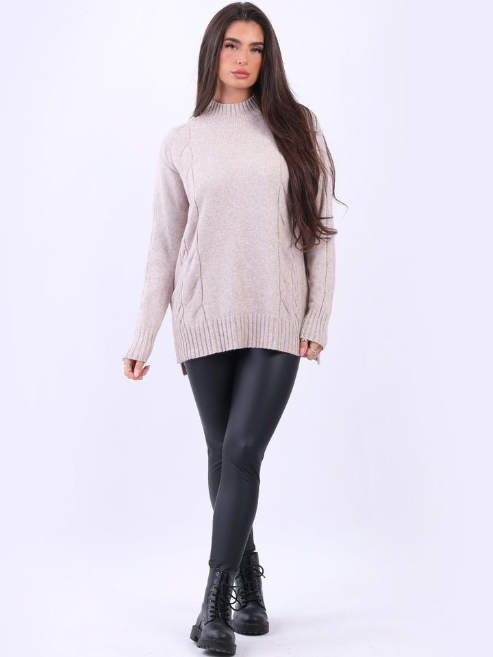 Discover the epitome of winter comfort with this plain oversized jumper. Made to perfection this chunky jumper is a textural masterpiece of women’s clothing due to its cable knit design, sophisticated funnel neck, lagenlook silhouette bringing a relaxed and contemporary vibe to clothing fashion. Perfect for chilly days, it has the perfect balance between comfort and fashion. The Lino Lounge plus size boutique redefines winter coziness with a touch of laid-back elegance.