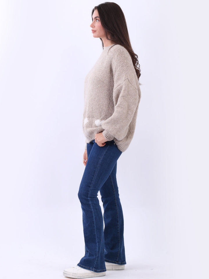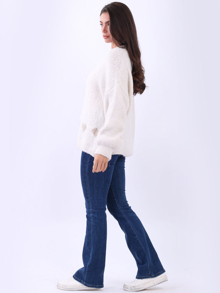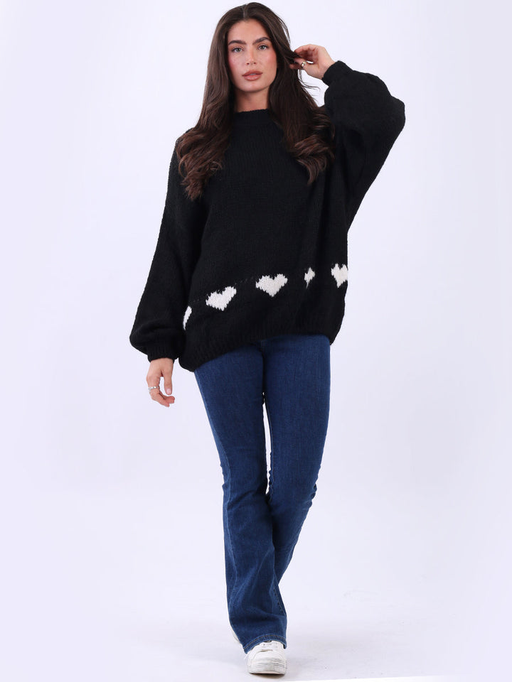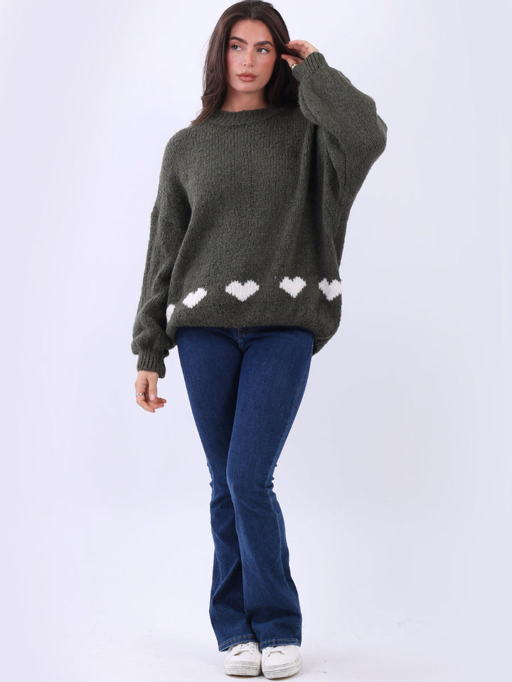 Add some love to your winter wardrobe with this Italian woolen jumper by The Lino Lounge online clothing store! Adorned with cute heart patterns on hem, this baggy-fit sweater is perfect for keeping warm on frosty winter days. Whether lounging at home or out for a casual weekend, it’s the coziest companion you’ll need.