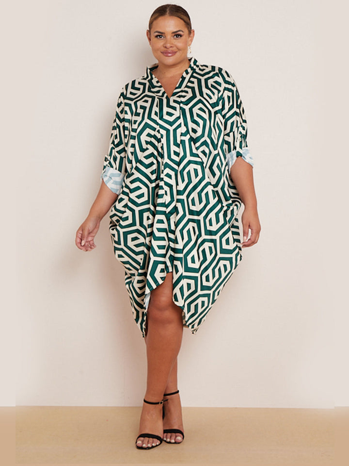 The satisfaction of a highly impressive design makes dressing up so much fun! Made in Italy with finest quality durable fabric that makes it ideal for many places and seasons, plunging V neckline ending at wide flare, rolled up tabbed sleeves and chic geometrical print. Dress it with capris and high heel pumps.