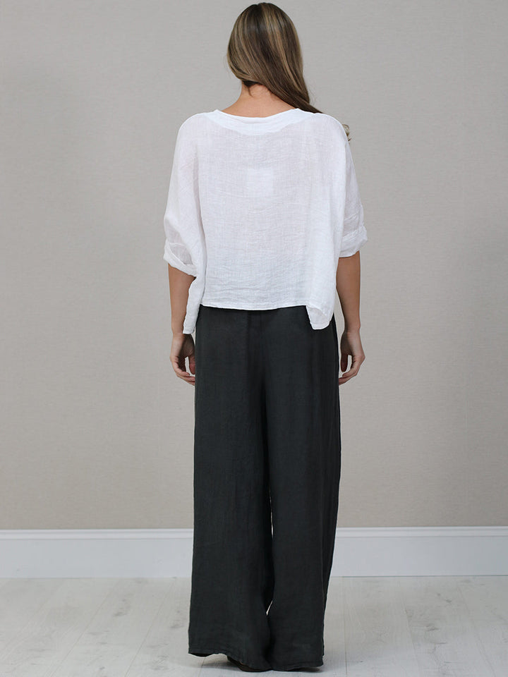 Italian Plain Linen Baggy Blouse