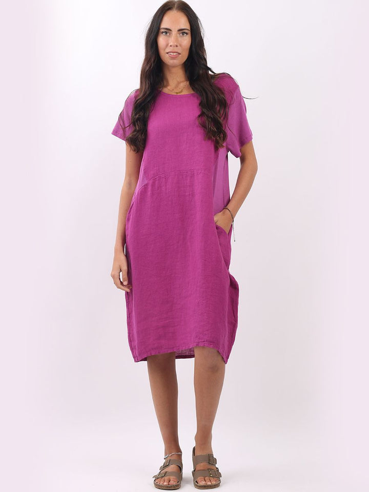 The Lino Lounge new arrival is here and so is this wardrobe must have. This made in Italy oversized midi dress will add dreamy detailing to your fashion, try styling with jeans and boots. Featured with round neck, short sleeves and side pockets that women would love to have.