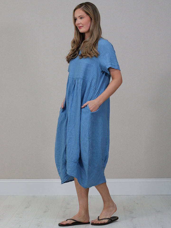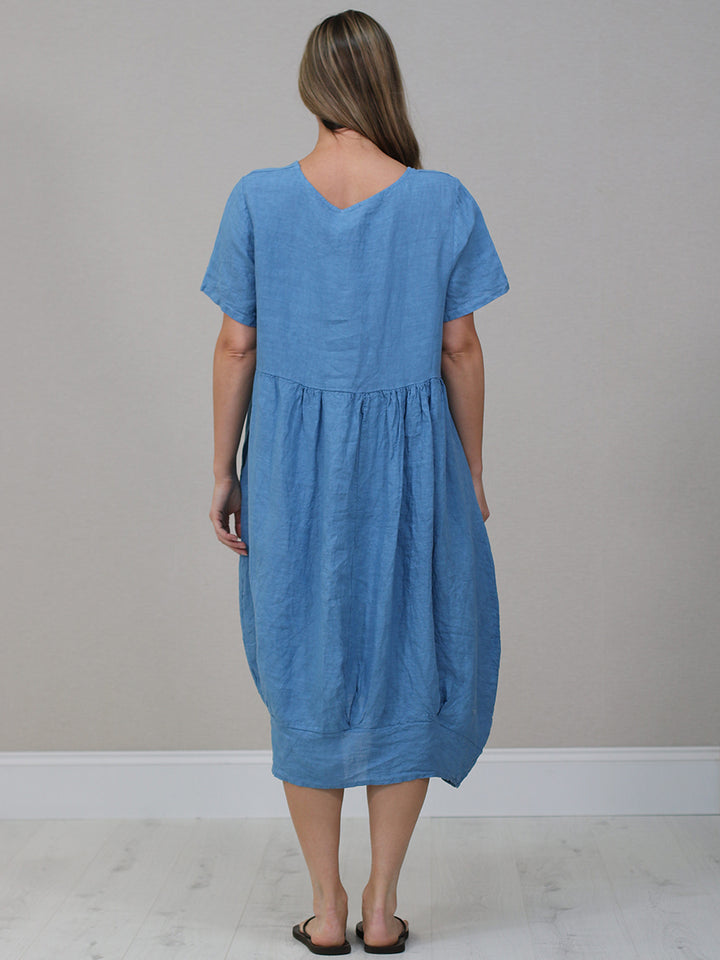 Plain Mid Length Quirky Linen Lagenlook Dress