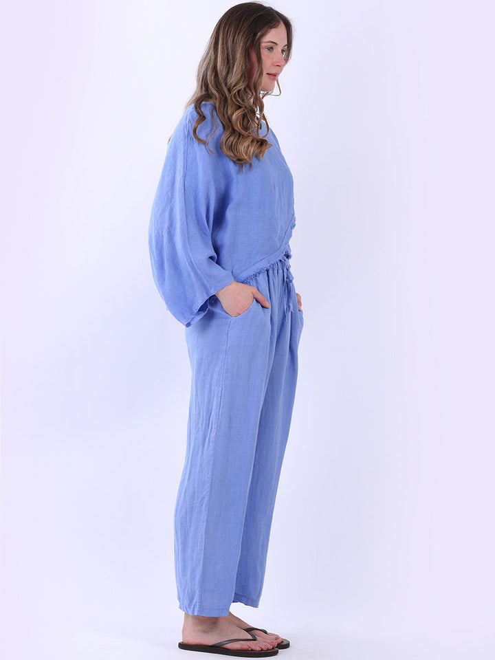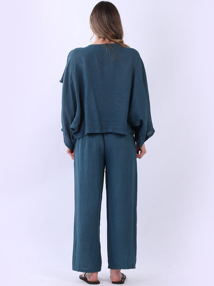 Not every plain top needs to shout to be heard. This solid linen batwing top speaks in soft, airy notes. Its asymmetric hem flutters like a quiet secret, while the wrap-over design knows how to keep things easy and cool. Style it with wide-leg trousers and layered bangles for those ‘less is more’ kind of days.