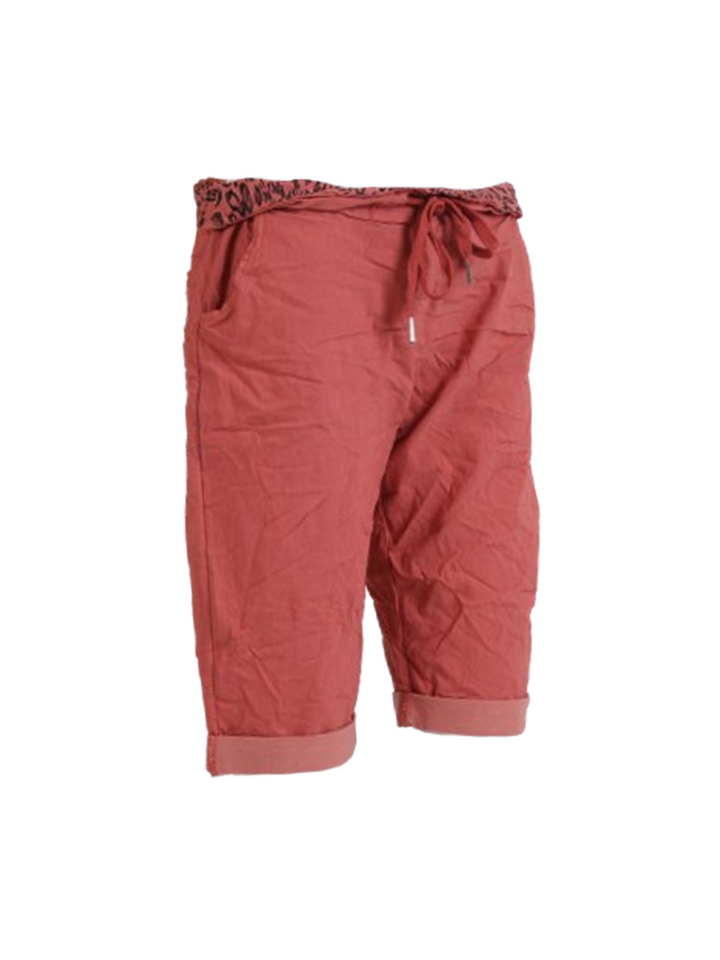 Stay cool and casual in summer with these Made in Italy plain casual ladies magic shorts. These relaxed fit knee length magic shorts are absolutely stunning showcasing soft drawstring waist belt, functional side pockets and rolled up hem . Make it your choice for a stunning look!