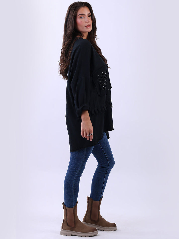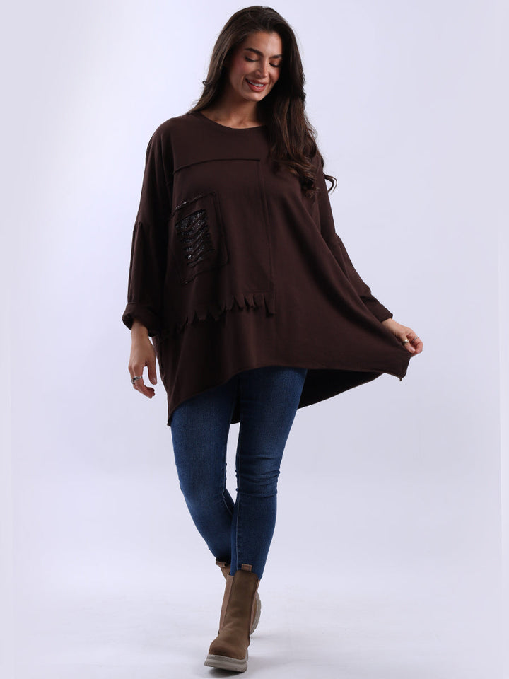 Lovely Ladies, step into comfort with this batwing cotton top presented by The Lino Lounge women’s clothing brand! With its unique sequin pocket and cozy fabric, this baggy top is perfect for those cool winter days when you want to feel stylish yet relaxed. Pair it with bold colors or neutrals for a standout look.