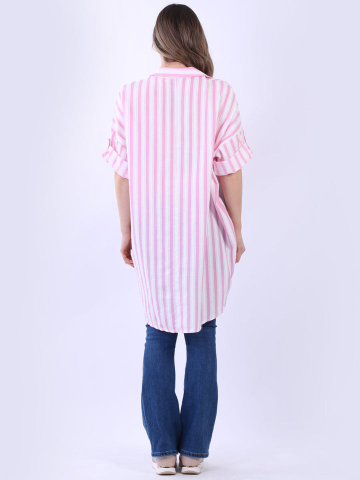 A formal striped shirt is always classic, and this one moves like pure poetry. Made from Italian cotton for women, it feels like a soft caress on warm summer days. While the dipped hem gives it a sophisticated sway, the traditional black-and-white stripes add a bit of easy grace. Its roomy, loose fit is ideal for hectic days when comfort and fashion have to coexist peacefully.