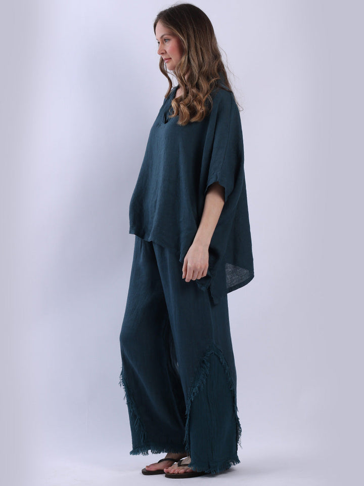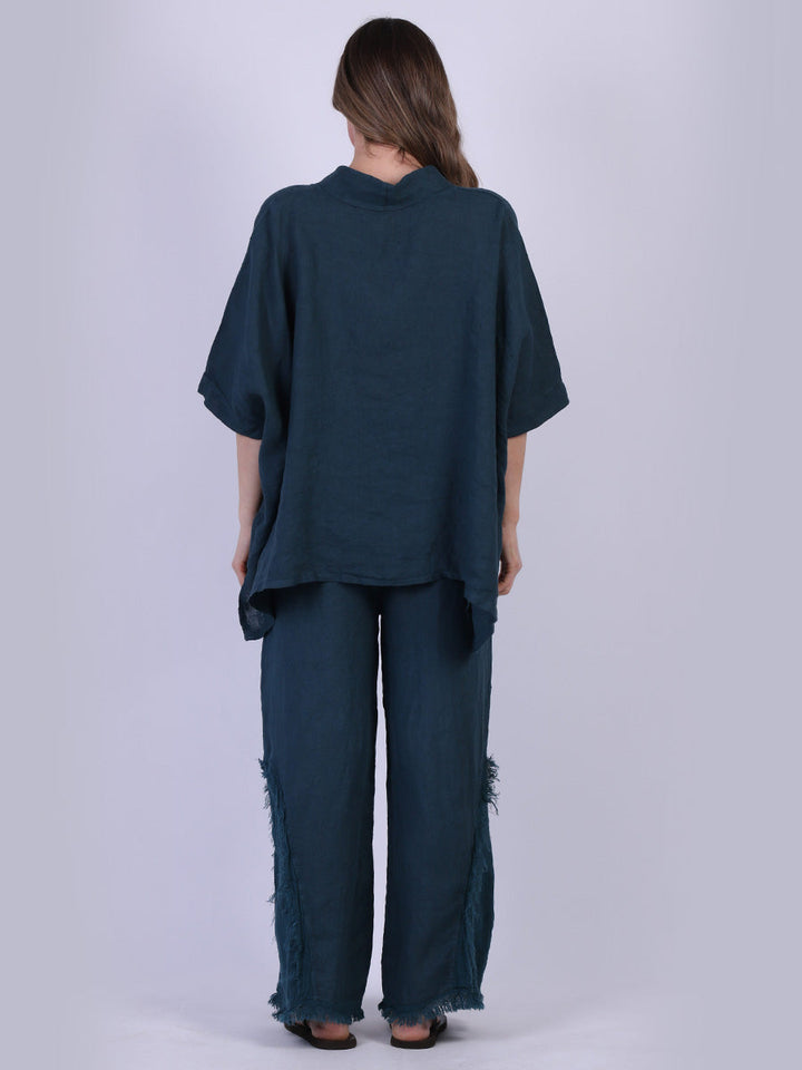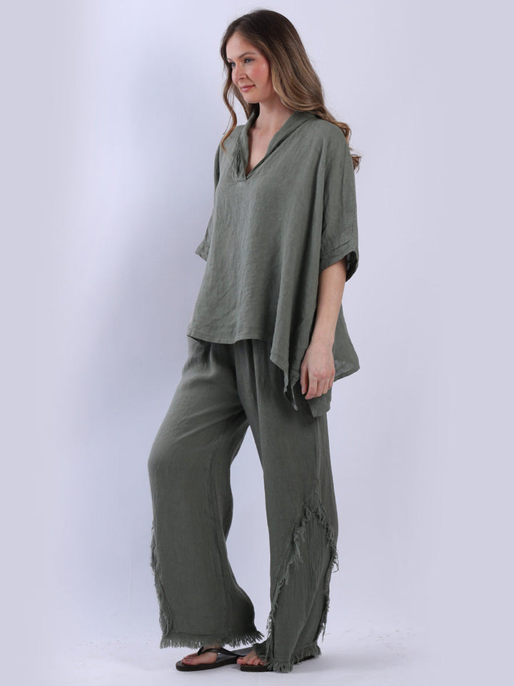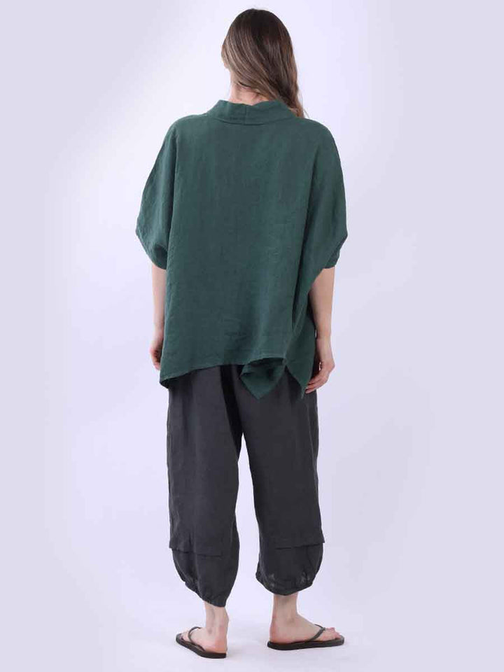 This loose-fit linen crop top drapes gently, like a soft hug, giving every movement comfort and beauty. For women who enjoy an airy, elegant silhouette, its solid-coloured, made-in-Italy fabric feels weightless. A must-have for an effortlessly feminine look, this blouse is simple but sentimental.