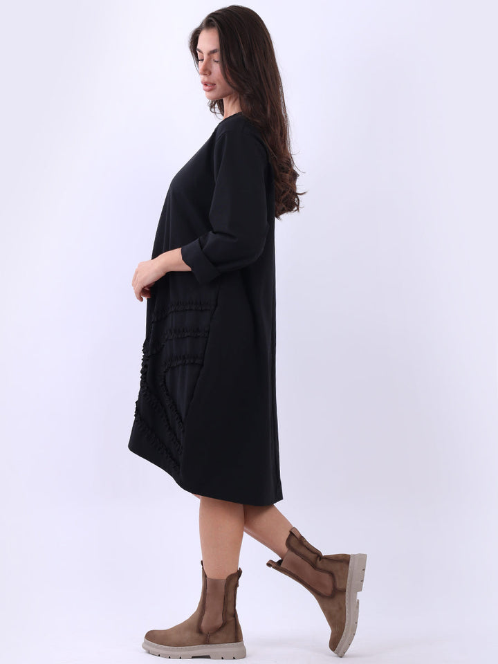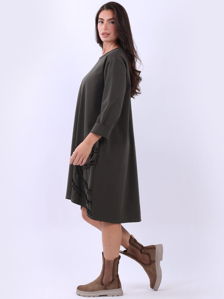Italian women! step into sophistication with our cotton lagenlook midi dress. Perfect for colder weather, this dress’s ruffle trim and soft fabric make it both stylish and comfortable. Layer it up on brisk fall evenings or chilly winter days for a look that’s effortlessly chic.